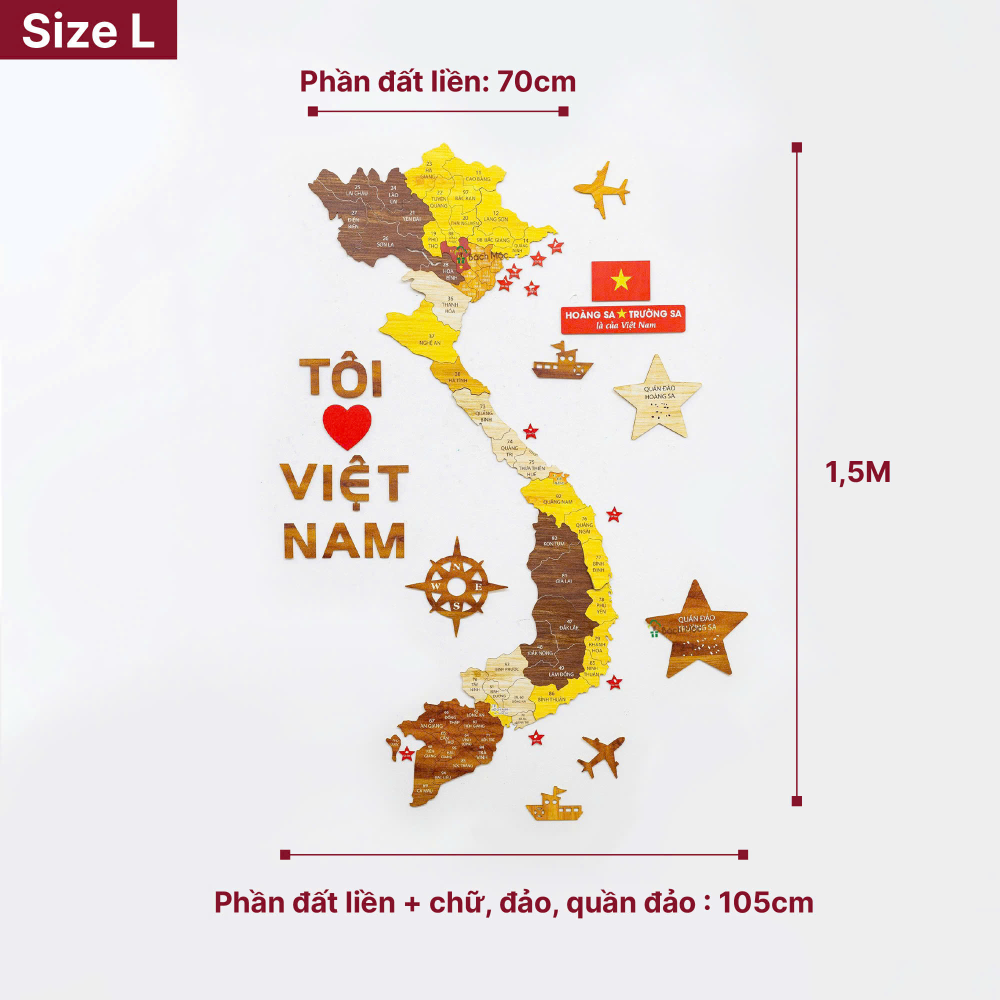 Sản phẩm có đa dạng kích thước từ 60cm đến 200cm, phù hợp cho nhiều không gian khác nhau. Ngoài việc được treo tường, mô hình còn giúp trẻ em dễ dàng học địa lý thông qua các câu đố vui nhộn. Nhìn chung, Bản Đồ Việt Nam Bằng Gỗ không chỉ là một món đồ trang trí đẹp mắt mà còn là công cụ hữu ích để khám phá văn hóa và địa lý của đất nước.